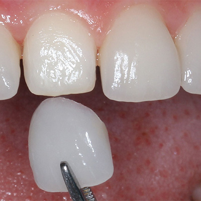 - dem Wiederaufbau von geschädigten Zähnen mit hochästhetischen Composites, hauchdünnen Verblendschalen aus Vollkeramik (Veneers) oder auch